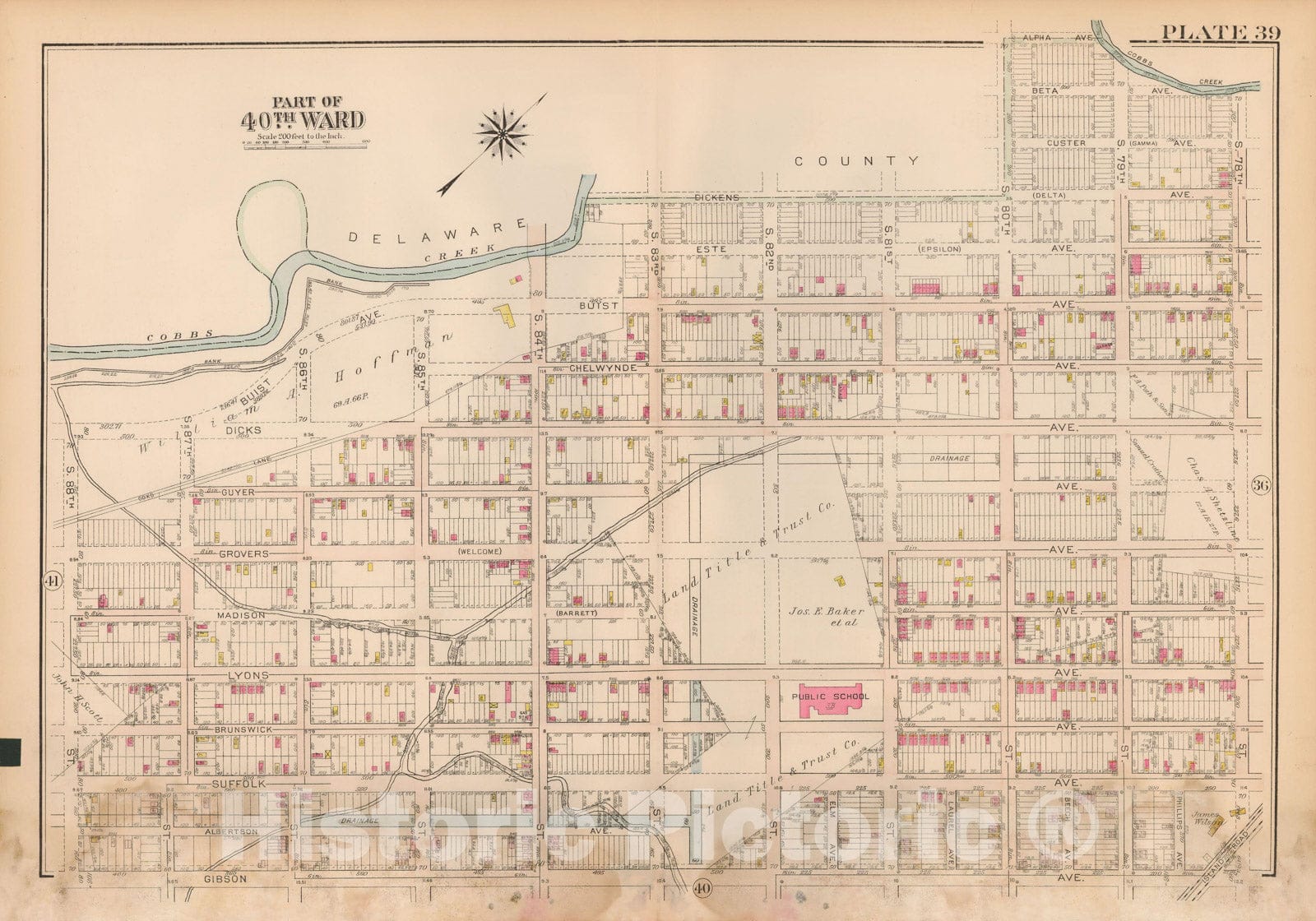 Historic Map : Atlas City of Philadelphia Wards 24,27,34,40,44&46 West Philadelphia, West Philadelphia 1927 Plate 039 , Vintage Wall Art