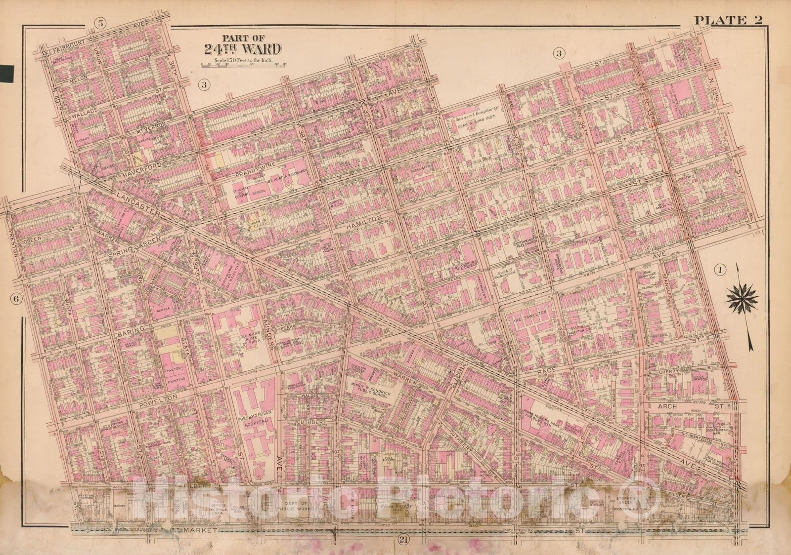 Historic Map : Atlas City of Philadelphia Wards 24,27,34,40,44&46 West Philadelphia, West Philadelphia 1927 Plate 002 , Vintage Wall Art
