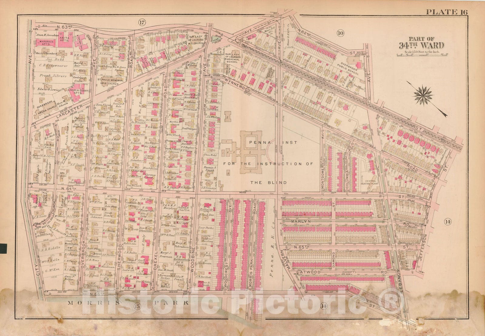 Historic Map : Atlas City of Philadelphia Wards 24,27,34,40,44&46 West Philadelphia, West Philadelphia 1927 Plate 016 , Vintage Wall Art