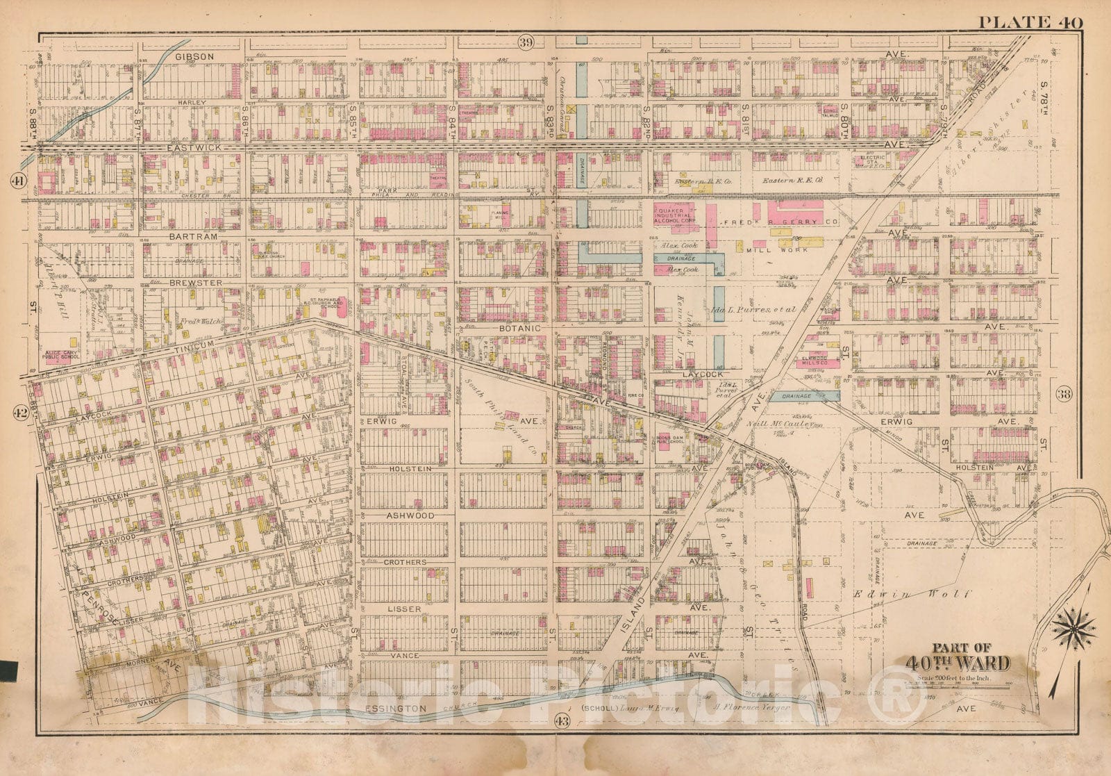 Historic Map : Atlas City of Philadelphia Wards 24,27,34,40,44&46 West Philadelphia, West Philadelphia 1927 Plate 040 , Vintage Wall Art