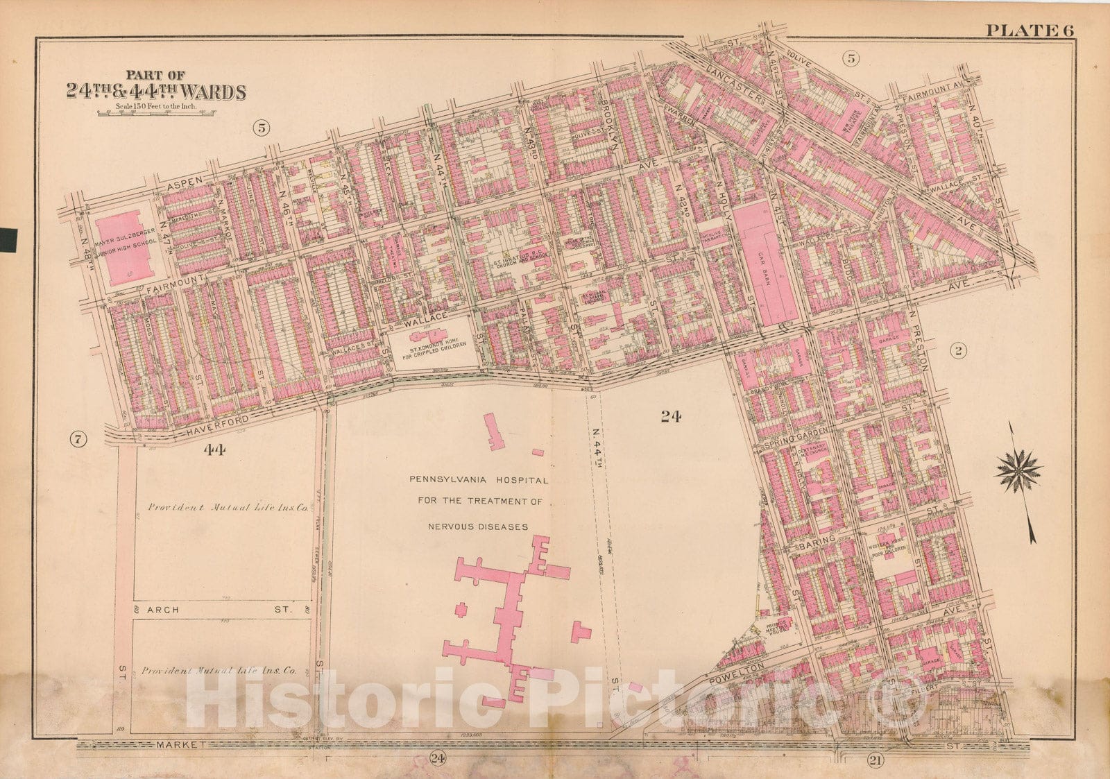 Historic Map : Atlas City of Philadelphia Wards 24,27,34,40,44&46 West Philadelphia, West Philadelphia 1927 Plate 006 , Vintage Wall Art