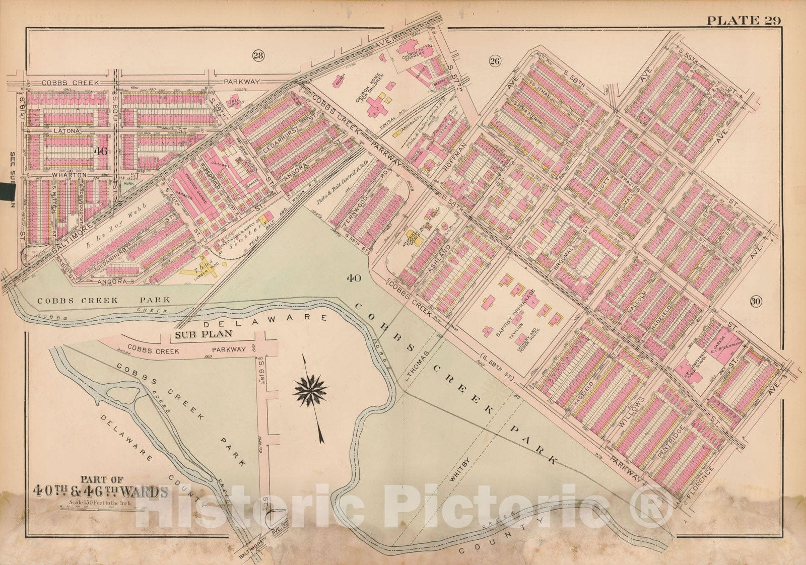 Historic Map : Atlas City of Philadelphia Wards 24,27,34,40,44&46 West Philadelphia, West Philadelphia 1927 Plate 029 , Vintage Wall Art