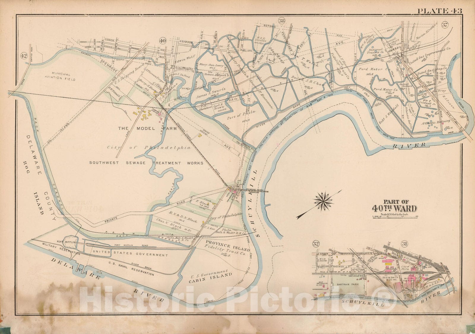 Historic Map : Atlas City of Philadelphia Wards 24,27,34,40,44&46 West Philadelphia, West Philadelphia 1927 Plate 043 , Vintage Wall Art