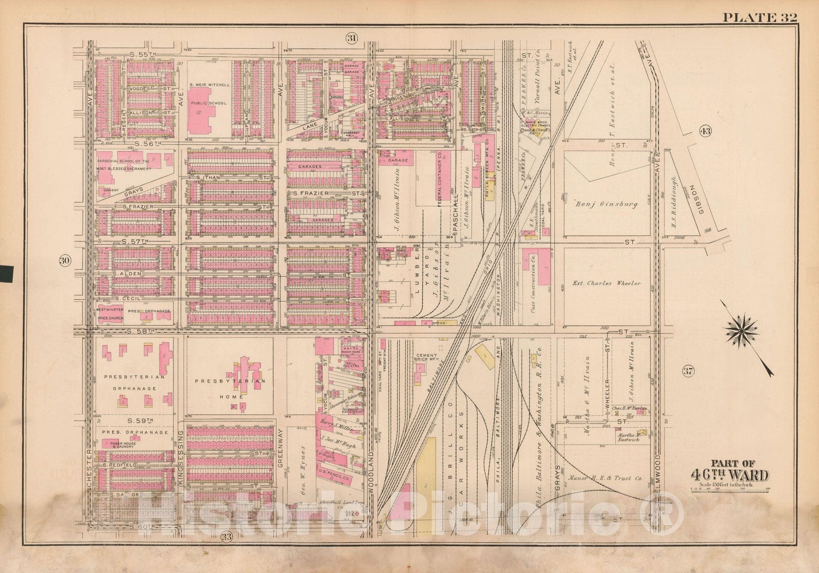 Historic Map : Atlas City of Philadelphia Wards 24,27,34,40,44&46 West Philadelphia, West Philadelphia 1927 Plate 032 , Vintage Wall Art