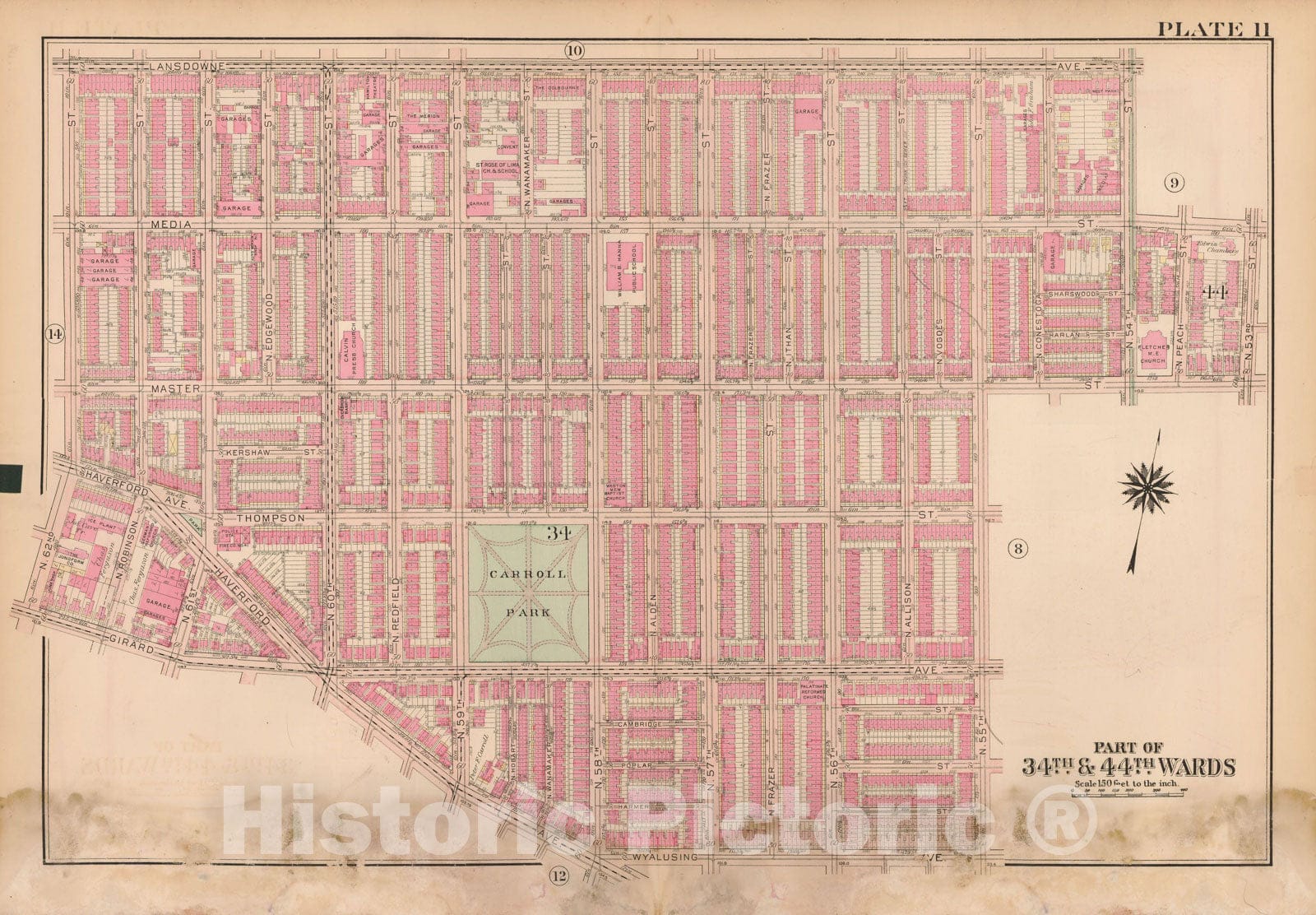 Historic Map : Atlas City of Philadelphia Wards 24,27,34,40,44&46 West Philadelphia, West Philadelphia 1927 Plate 011 , Vintage Wall Art