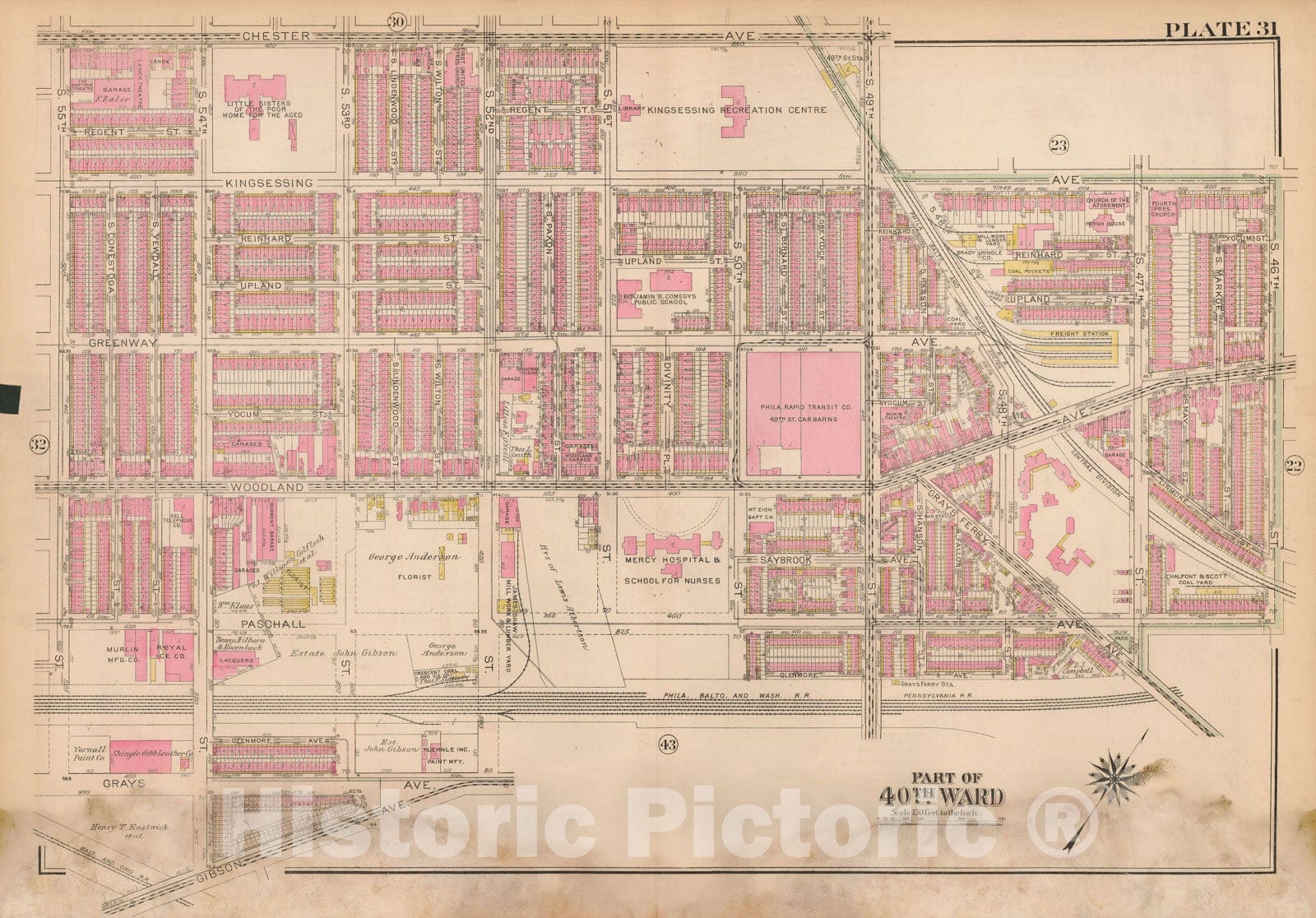 Historic Map : Atlas City of Philadelphia Wards 24,27,34,40,44&46 West Philadelphia, West Philadelphia 1927 Plate 031 , Vintage Wall Art