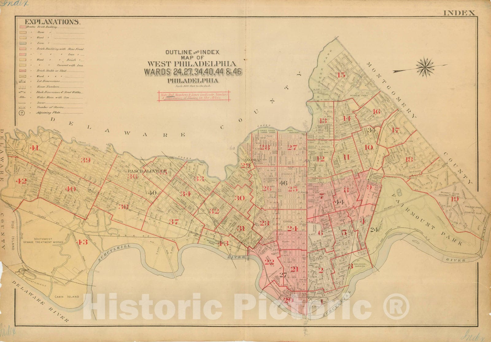 Historic Map : Atlas of Philadelphia, Wards 24, 27, 34, 40, 44, 46, West Philadelphia 1918 Index Plate , Vintage Wall Art
