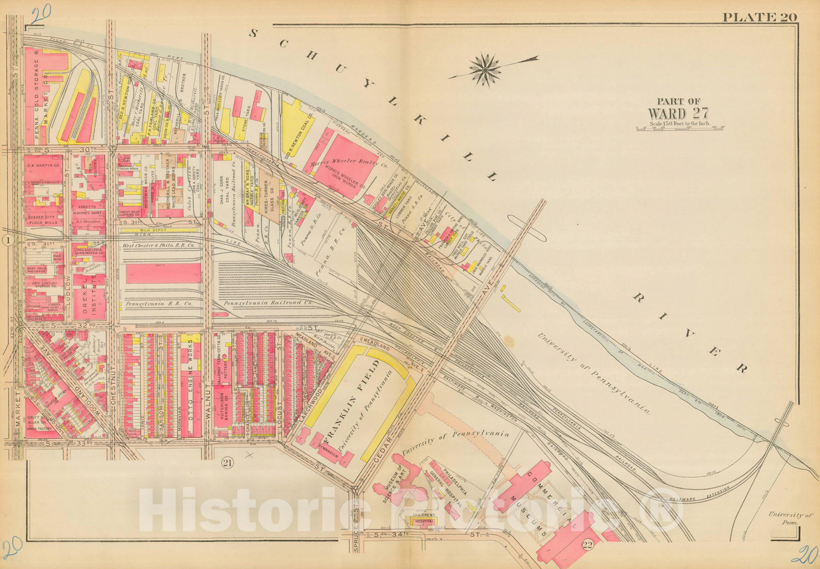 Historic Map : Atlas of Philadelphia, Wards 24, 27, 34, 40, 44, 46, West Philadelphia 1918 Plate 020 , Vintage Wall Art