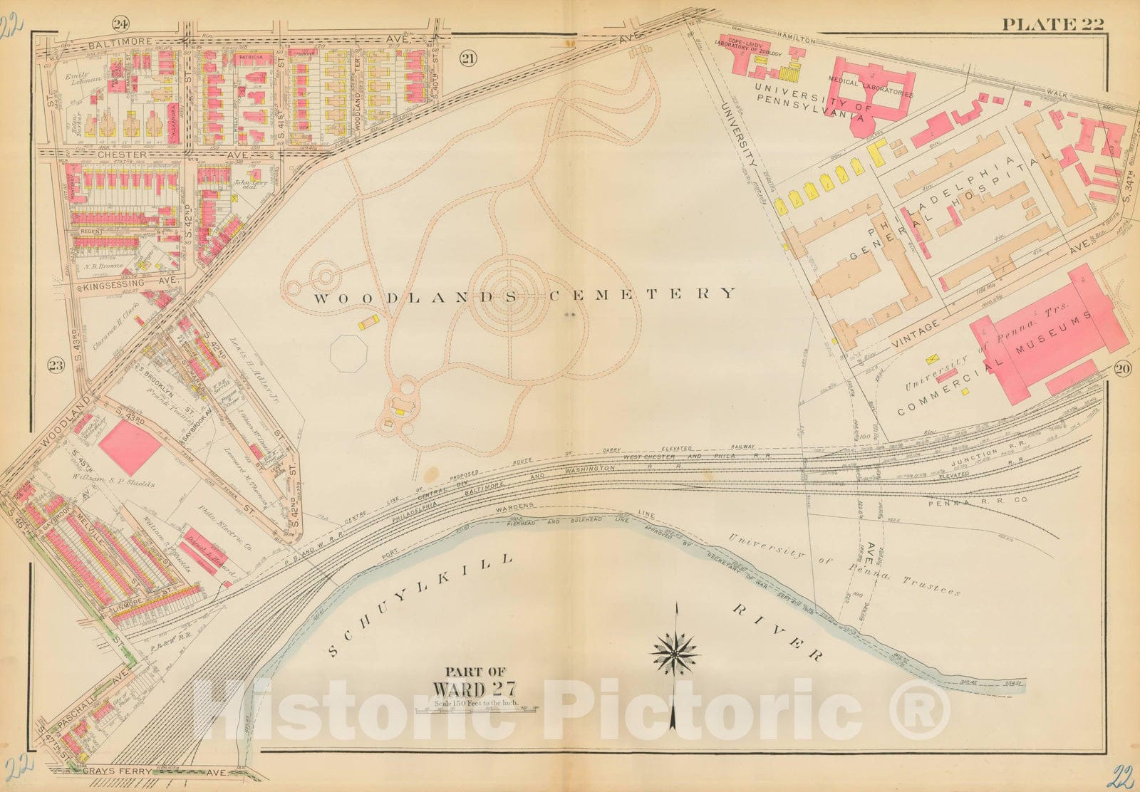 Historic Map : Atlas of Philadelphia, Wards 24, 27, 34, 40, 44, 46, West Philadelphia 1918 Plate 022 , Vintage Wall Art