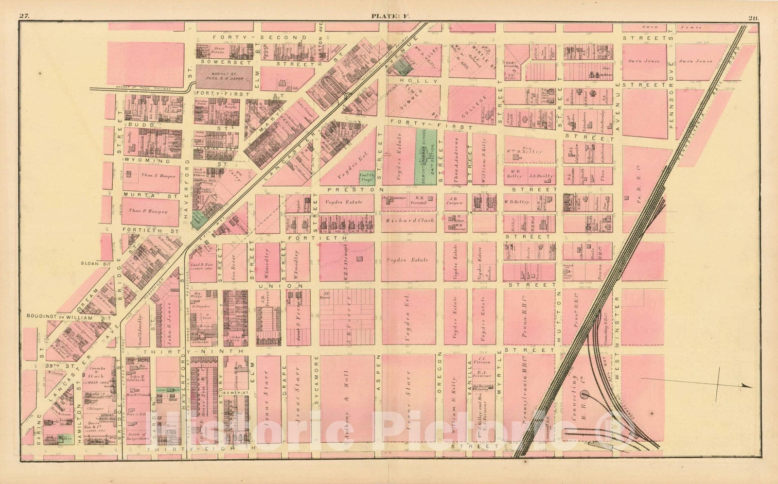 • .Historic Map : Atlas of West Philadelphia including the 24th & 27th Wards of the City of Philadelphia, West Philadelphia 1872 Plate F , Vintage Wall Art