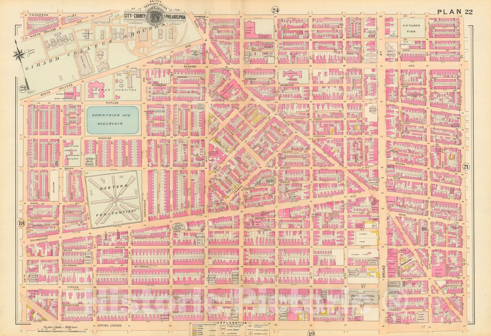 Historic Map : Baist's Property Atlas of Philadelphia, Philadelphia 1895 Plate 022 , Vintage Wall Art