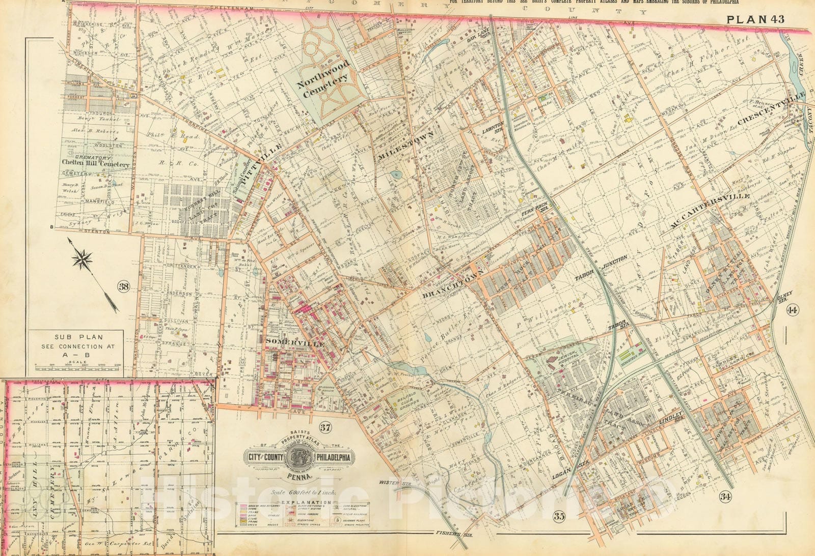 • Historic Map : Baist's Property Atlas of Philadelphia, Philadelphia 1895 Plate 043 , Vintage Wall Art