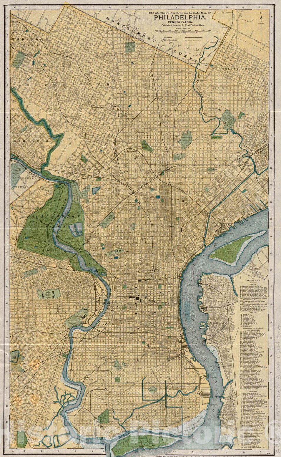 Historical Map, ca. 1895 The Matthews-Northrup up-to-Date map of Philadelphia, Pennsylvania, Vintage Wall Art