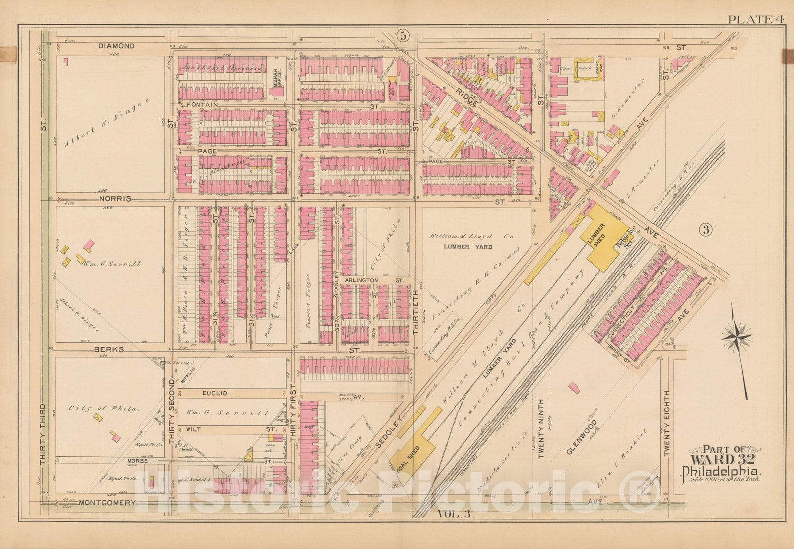 Historic Map : City of Philadelphia, 28th 32nd & 37th Wards, Vol. 6, Second Ed., Philadelphia 1894 Plate 004 , Vintage Wall Art