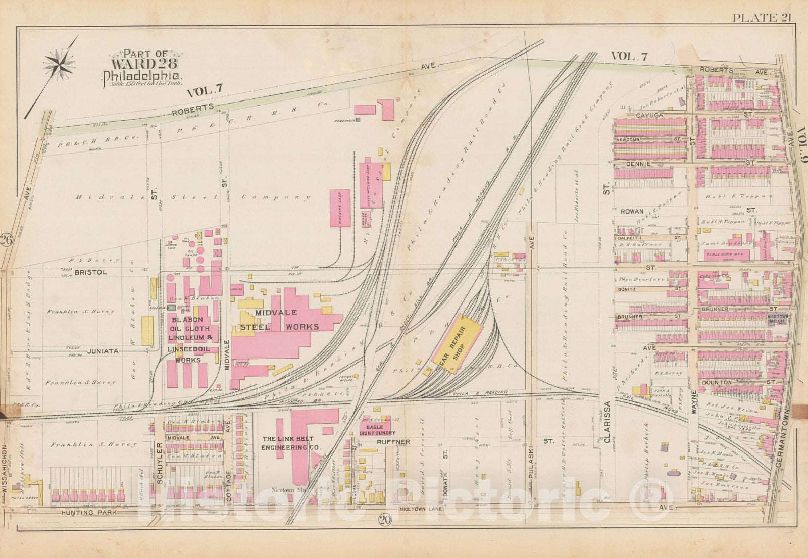 Historic Map : City of Philadelphia, 28th 32nd & 37th Wards, Vol. 6, Second Ed., Philadelphia 1894 Plate 021 , Vintage Wall Art