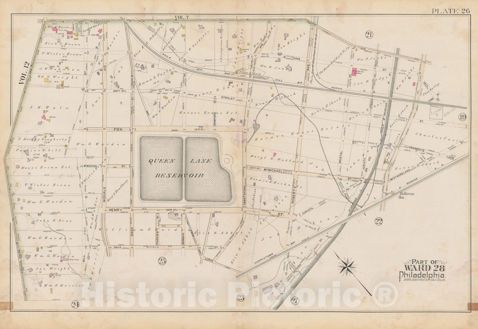 • .Historic Map : City of Philadelphia, 28th 32nd & 37th Wards, Vol. 6, Second Ed., Philadelphia 1894 Plate 026 , Vintage Wall Art