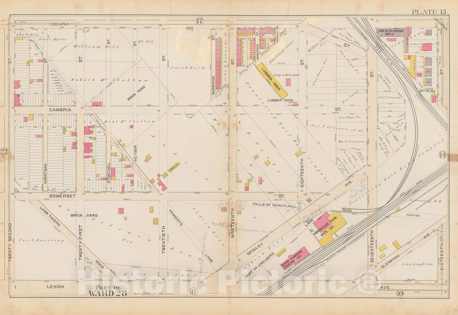 Historic Map : City of Philadelphia, 28th 32nd & 37th Wards, Vol. 6, Second Ed., Philadelphia 1894 Plate 015 , Vintage Wall Art