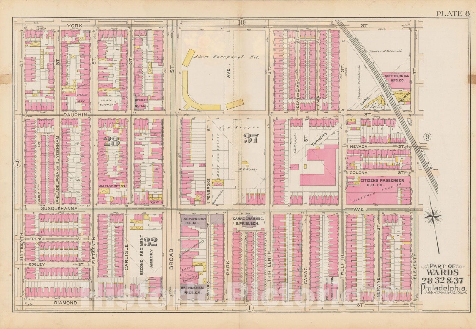 Historic Map : City of Philadelphia, 28th 32nd & 37th Wards, Vol. 6, Second Ed., Philadelphia 1894 Plate 008 , Vintage Wall Art