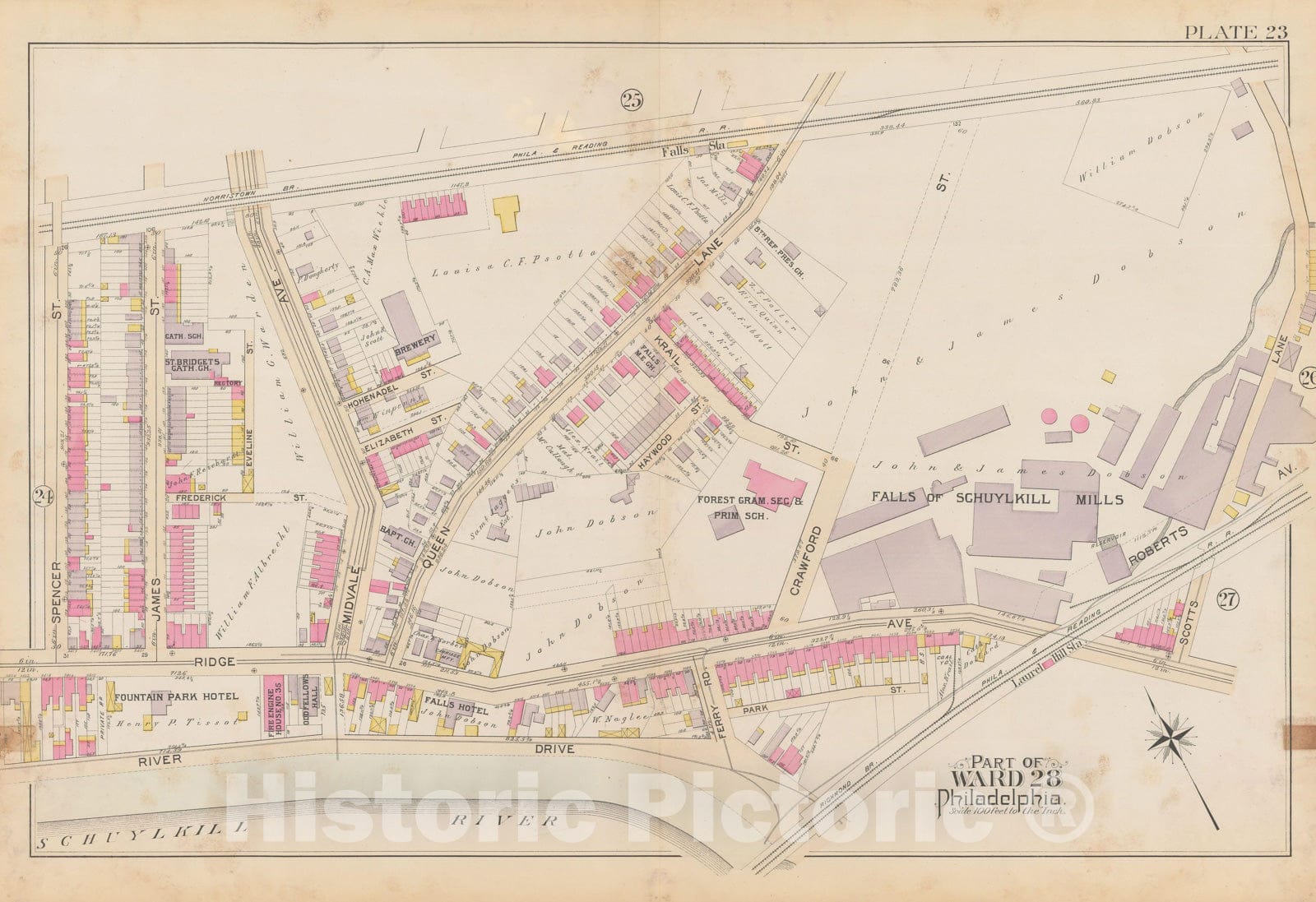 • .Historic Map : City of Philadelphia, 28th 32nd & 37th Wards, Vol. 6, Second Ed., Philadelphia 1894 Plate 023 , Vintage Wall Art