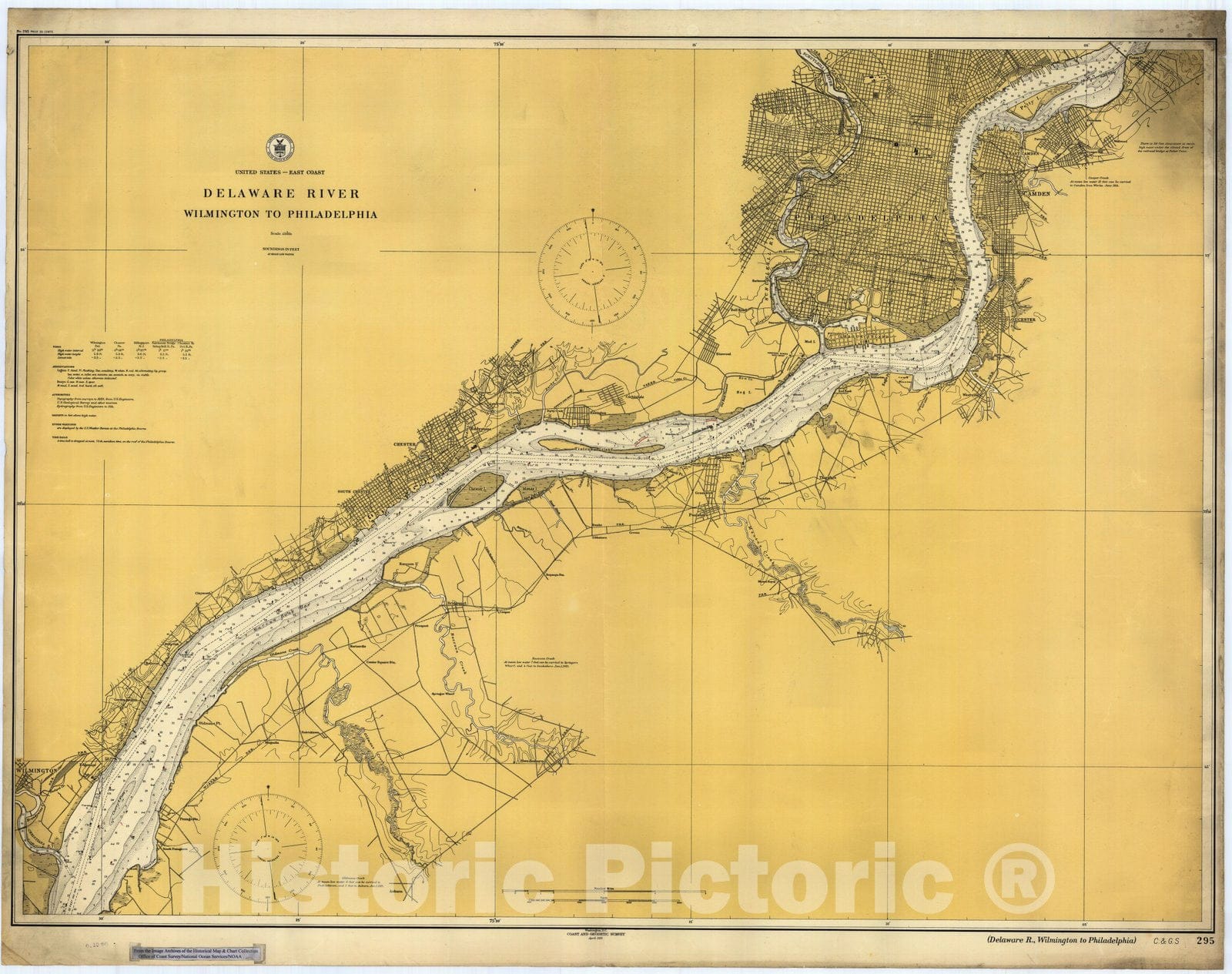 Historic Nautical Map - Delaware River : Wilmington To Philadelphia, 1915 NOAA Chart - Vintage Wall Art
