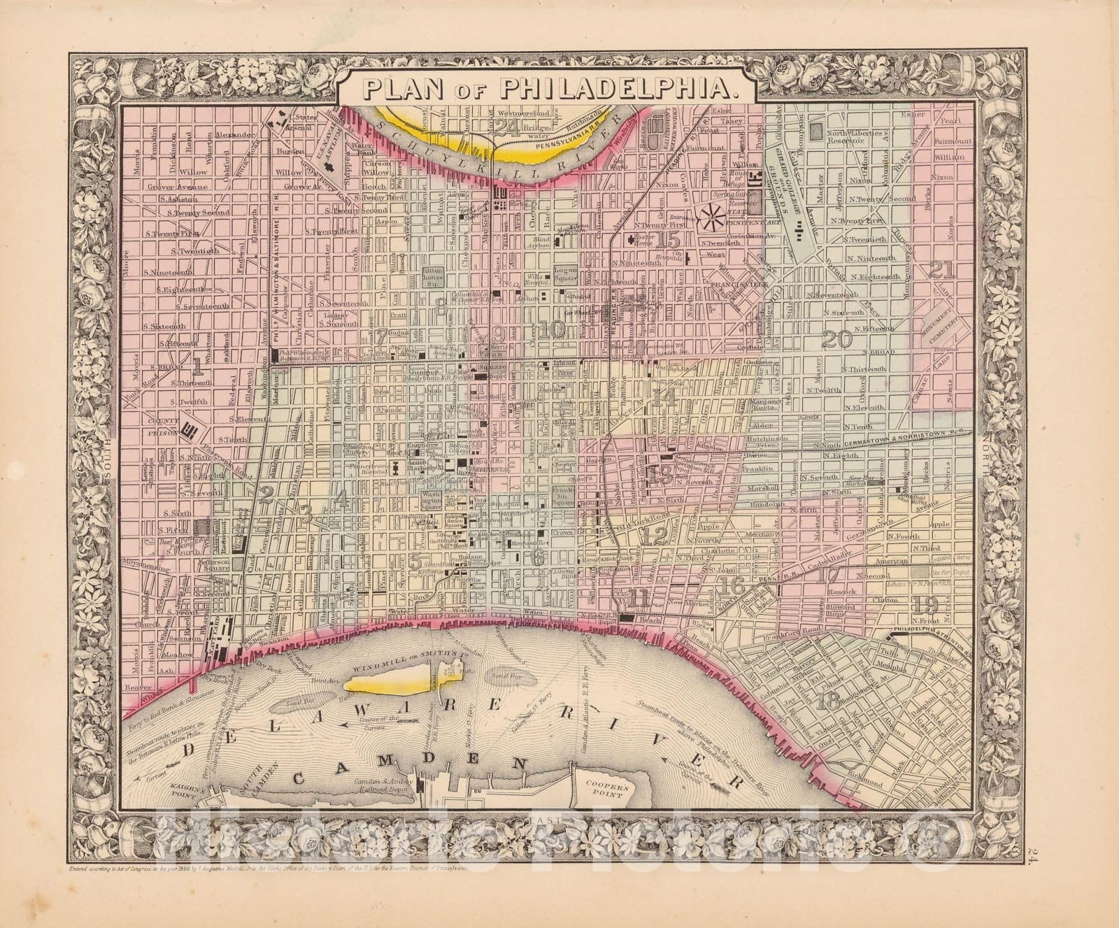 Historic Map : Philadelphia 1864 , New General (World) Atlas , Vintage Wall Art
