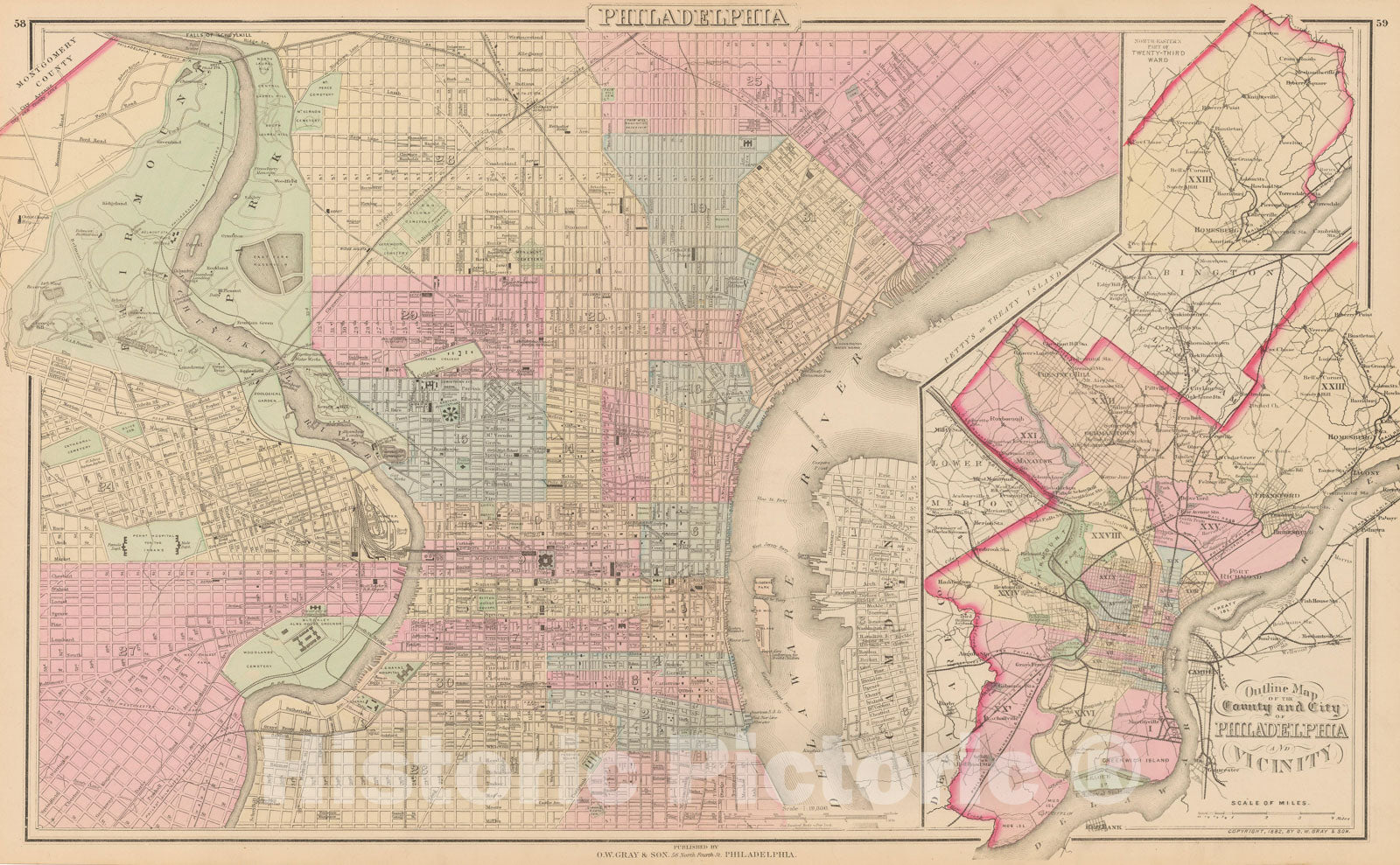 Historic Map : Philadelphia, Philadelphia 1882 , Vintage Wall Art
