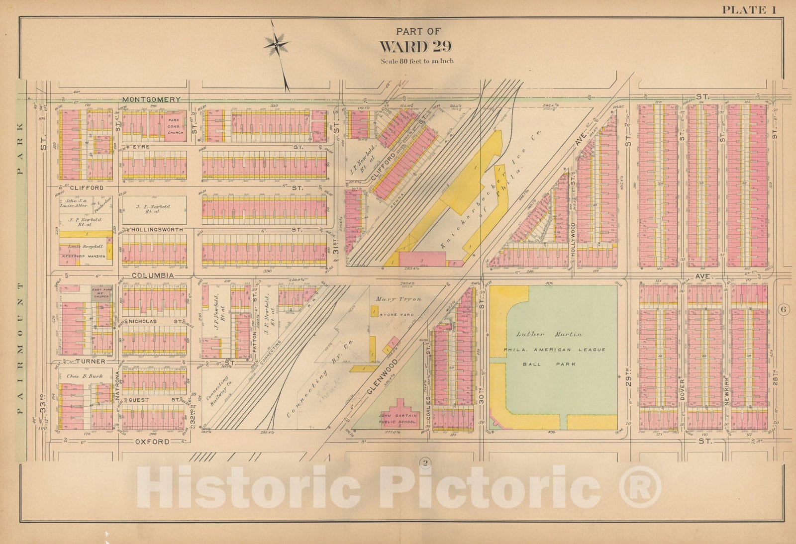 • .Historic Map : Philadelphia 1907 Plate 001 , Atlas 20th and 29th Wards of the City of Philadelphia , Vintage Wall Art