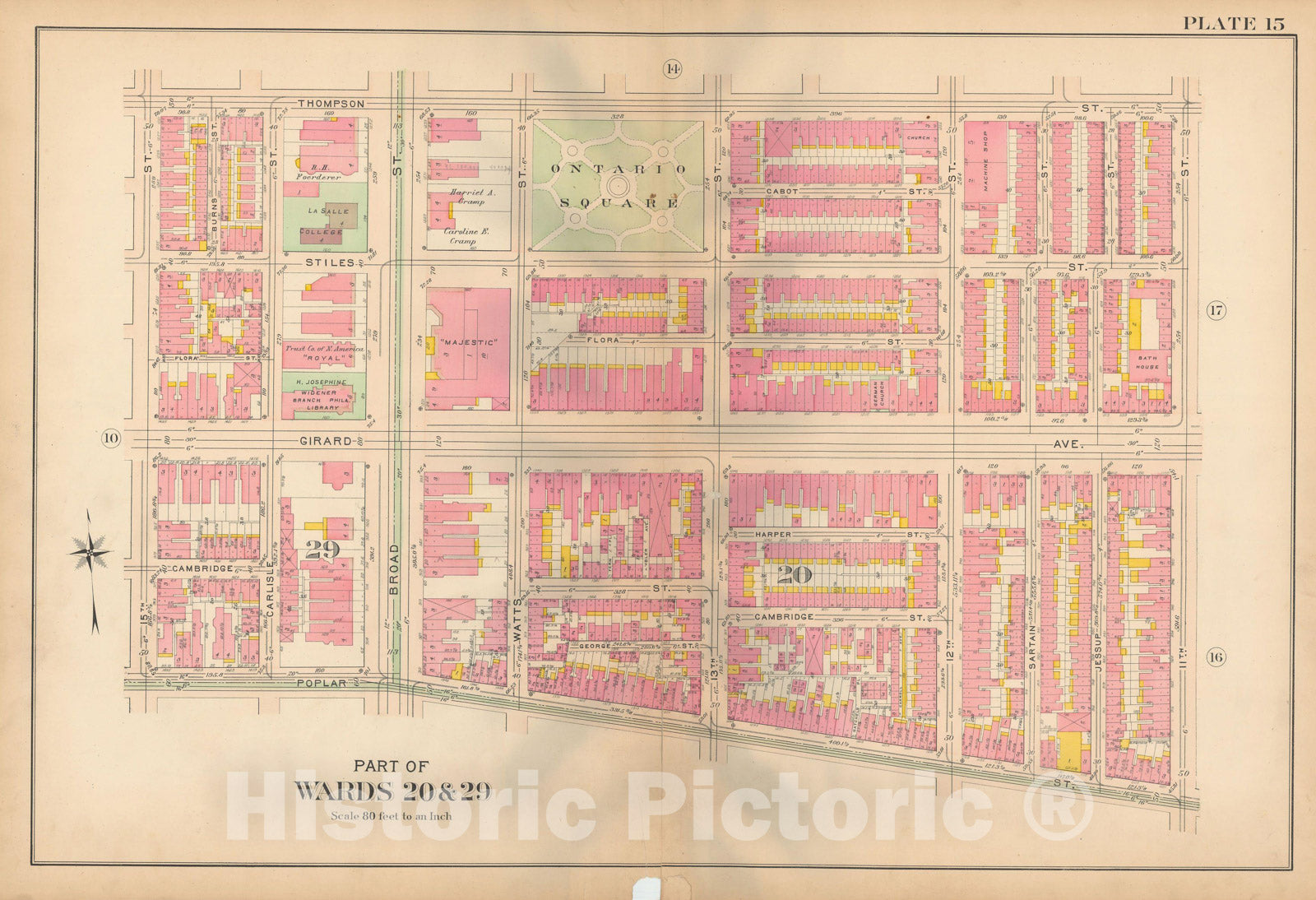 Historic Map : Philadelphia 1907 Plate 015 , Atlas 20th and 29th Wards of the City of Philadelphia , Vintage Wall Art