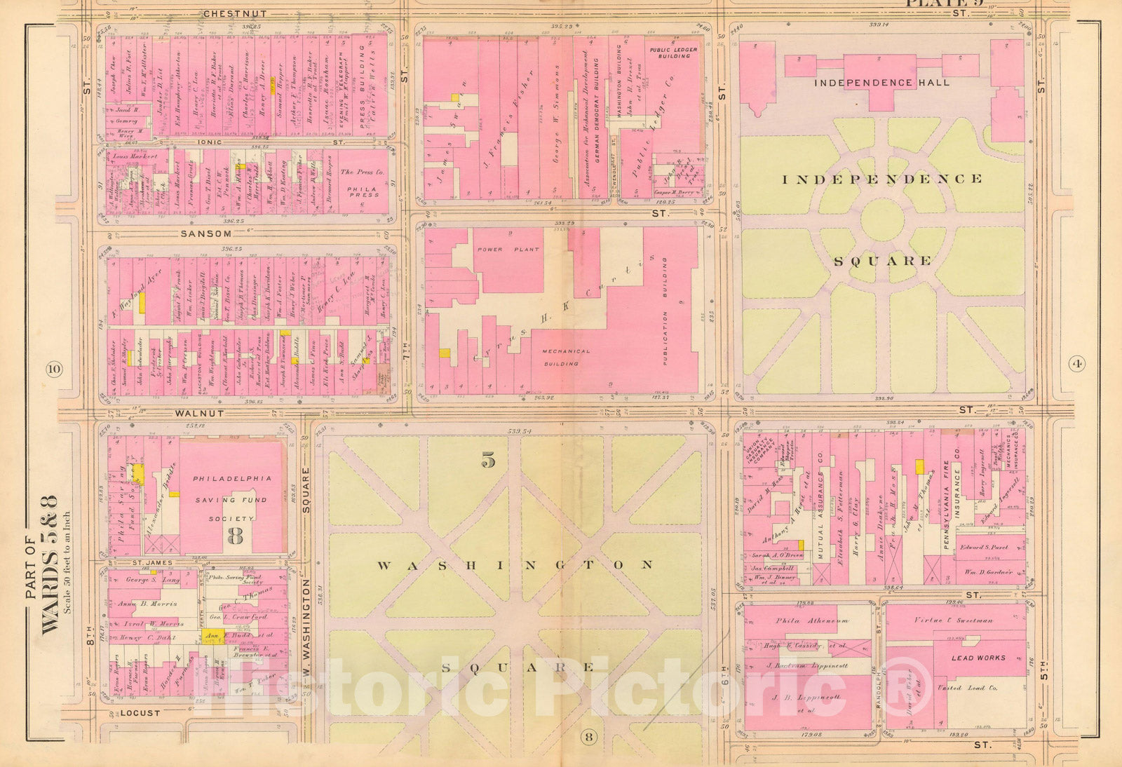 Atlas of the 5th, 7th & 8th Wards of the City of Philadelphia, Philadelphia 1908 Plate 009