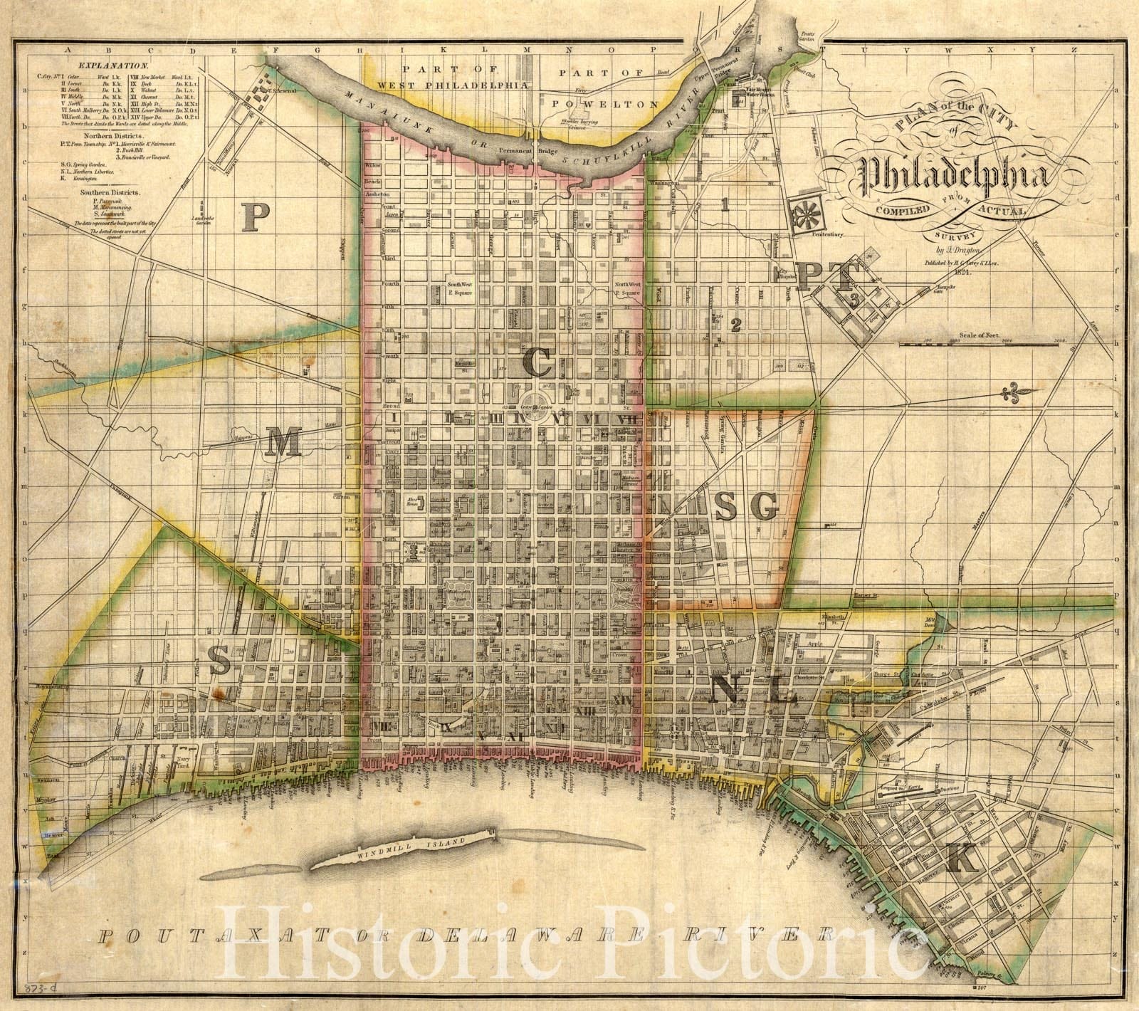 Map : Philadelphia (Pennsylvania) 1824, Plan of the city of Philadelphia , Antique Vintage Reproduction