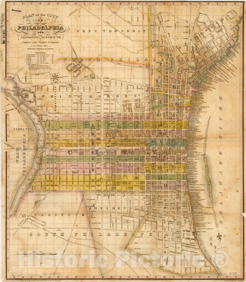 Map : Philadelphia, Pennsylvania 1828 1, Plan of the city of Philadelphia and adjoining districts , Antique Vintage Reproduction
