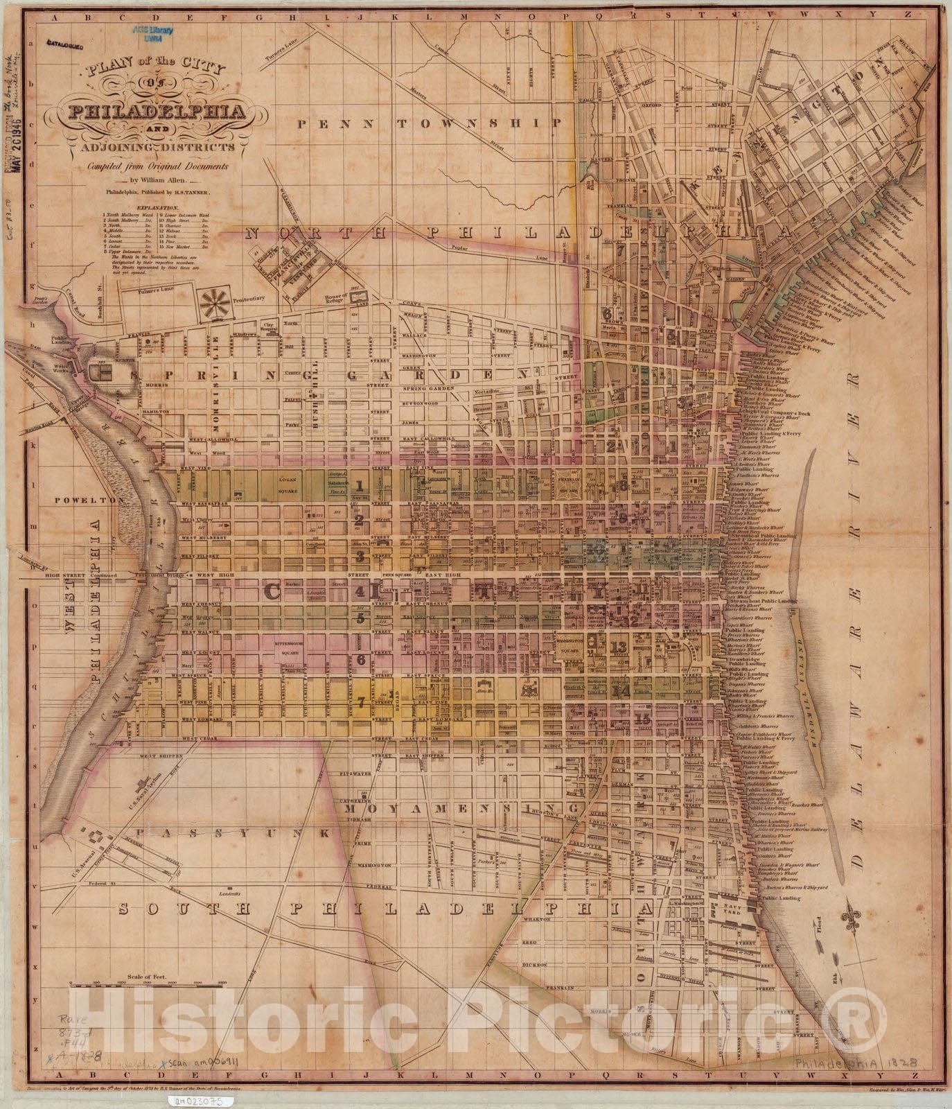 Map : Philadelphia, Pennsylvania 1828 2, Plan of the city of Philadelphia and adjoining districts , Antique Vintage Reproduction