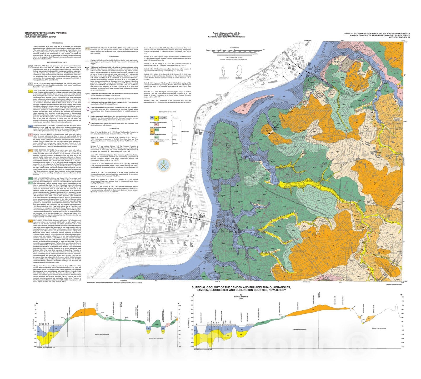 Map : Surficial geology of the Camden and Philadelphia quadrangles, Camden, Gloucester, and Burlington counties, New Jersey, 2004 Cartography Wall Art :