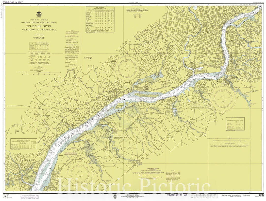 Historic Nautical Map - Delaware River -Wilmington To Philadelphia, 1976 NOAA Chart - Delaware, Pennsylvania, New Jersey (DE, PA, NJ) - Vintage Wall Art