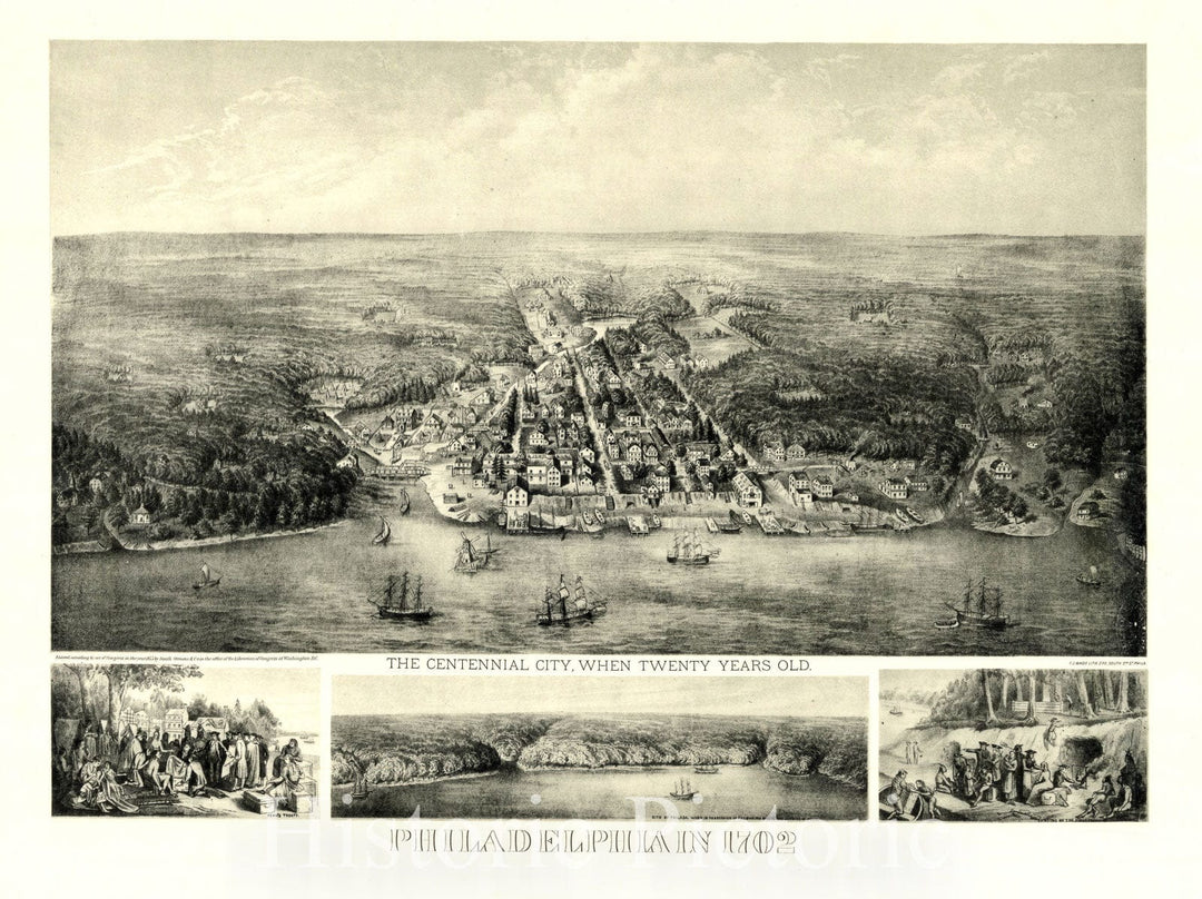 Map : Philadelphia, The centennial city when twenty years old, Philadelphia in 1702, Antique Vintage Reproduction
