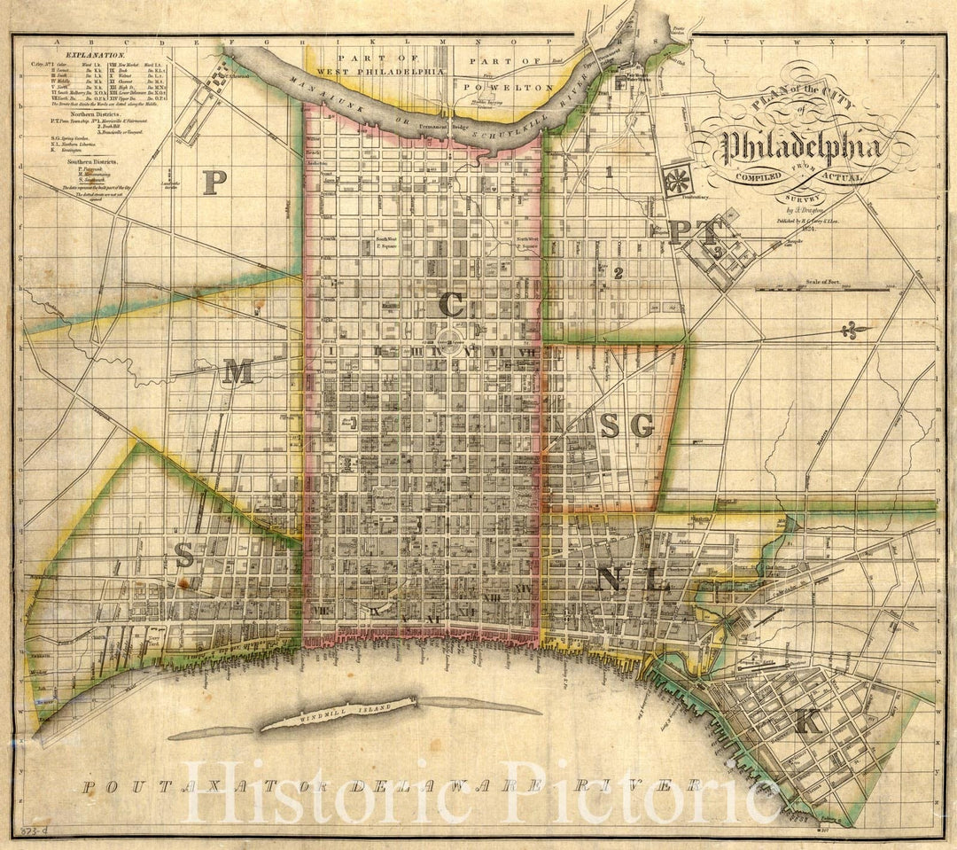Map : Philadelphia, Pennsylvania 1828 2, Plan of the city of Philadelphia and adjoining districts , Antique Vintage Reproduction