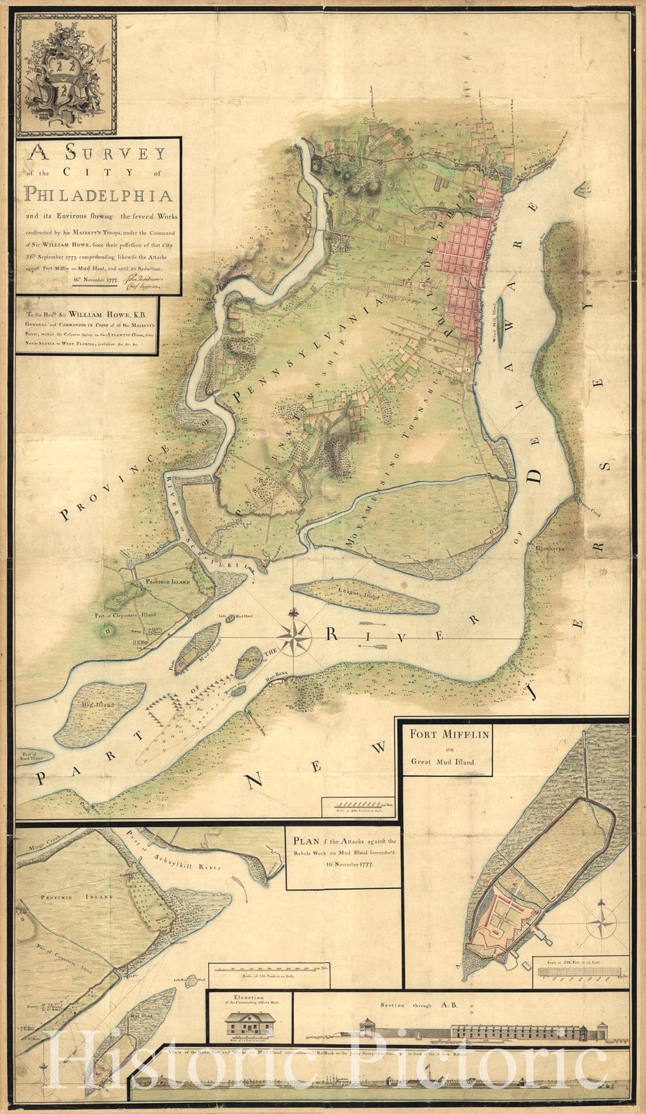 Historic 1777 Map - A Survey of The City of Philadelphia and its Environs shewing The Several Works Constructed by His Majesty's Troops, Under The Command of Sir William Howe,