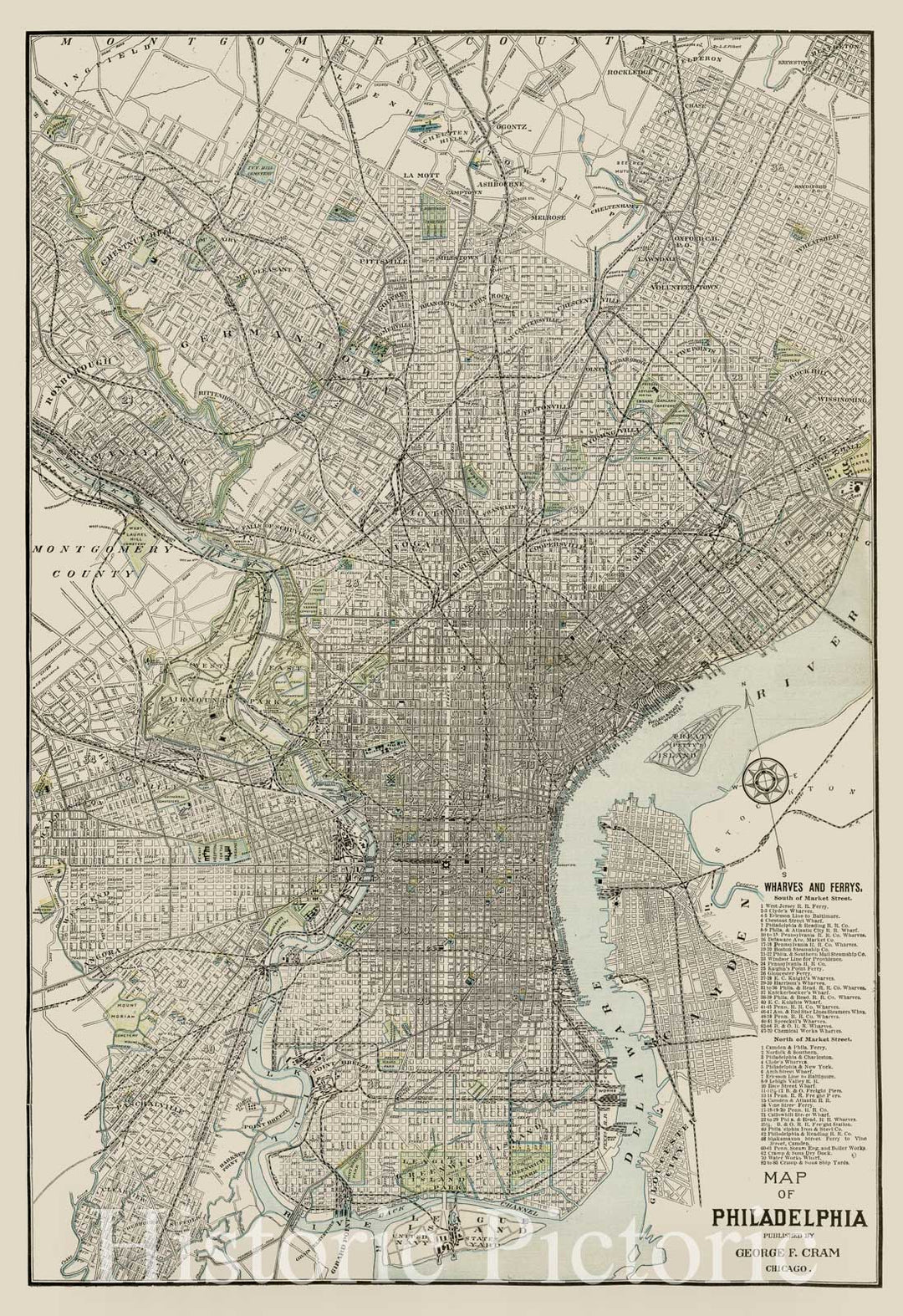 Historic Map - Map of Philadelphia, 1899, George F. Cram - Vintage Wall Art