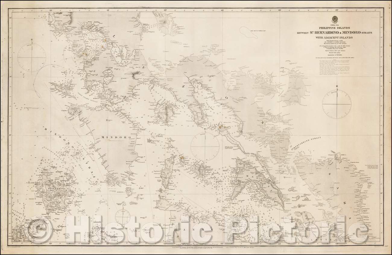 Historic Map - Philippine Islands Between St. Bernardino & Mindoro Straits with Adjacent Islands From Spanish Surveys to, 1887, British Admiralty - Vintage Wall Art