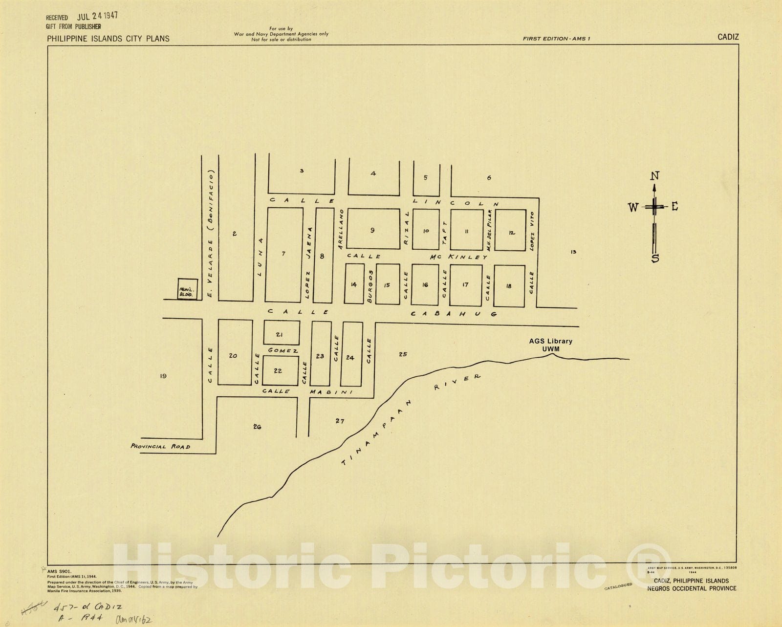Map : Cadiz, Philippine Islands 1944, Cadiz, Philippine Islands, Negros Occidental Province, Antique Vintage Reproduction