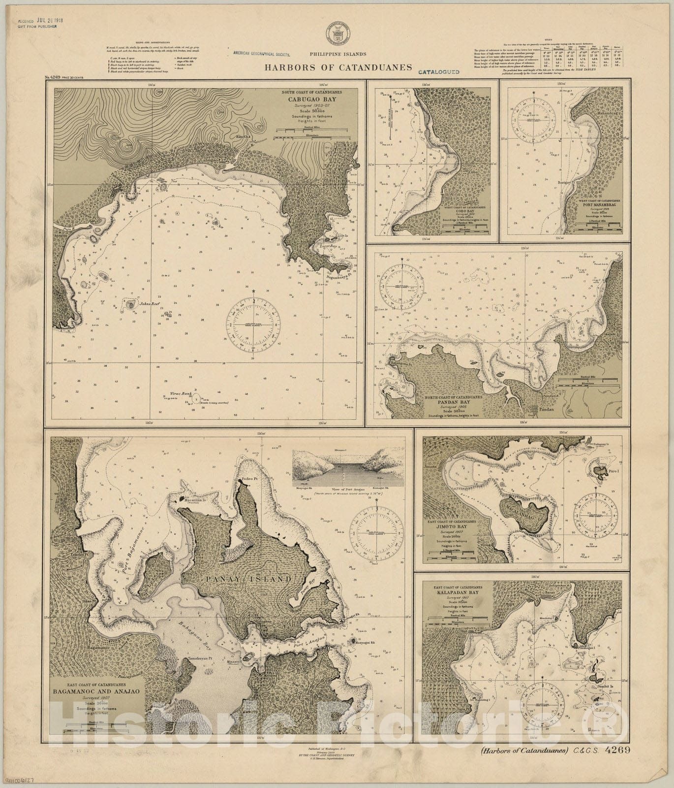 Map : Harbors of Catanduanes, Philippines 1909, Philippine Islands, Harbors of Catanduanes , Antique Vintage Reproduction