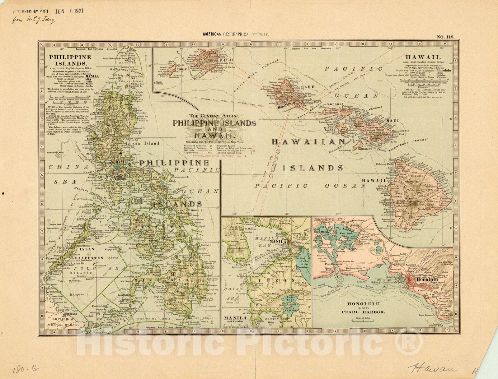 Map : Philippine Islands and Hawaii 1898, The Century Atlas : Philippine Islands and Hawaii , Antique Vintage Reproduction
