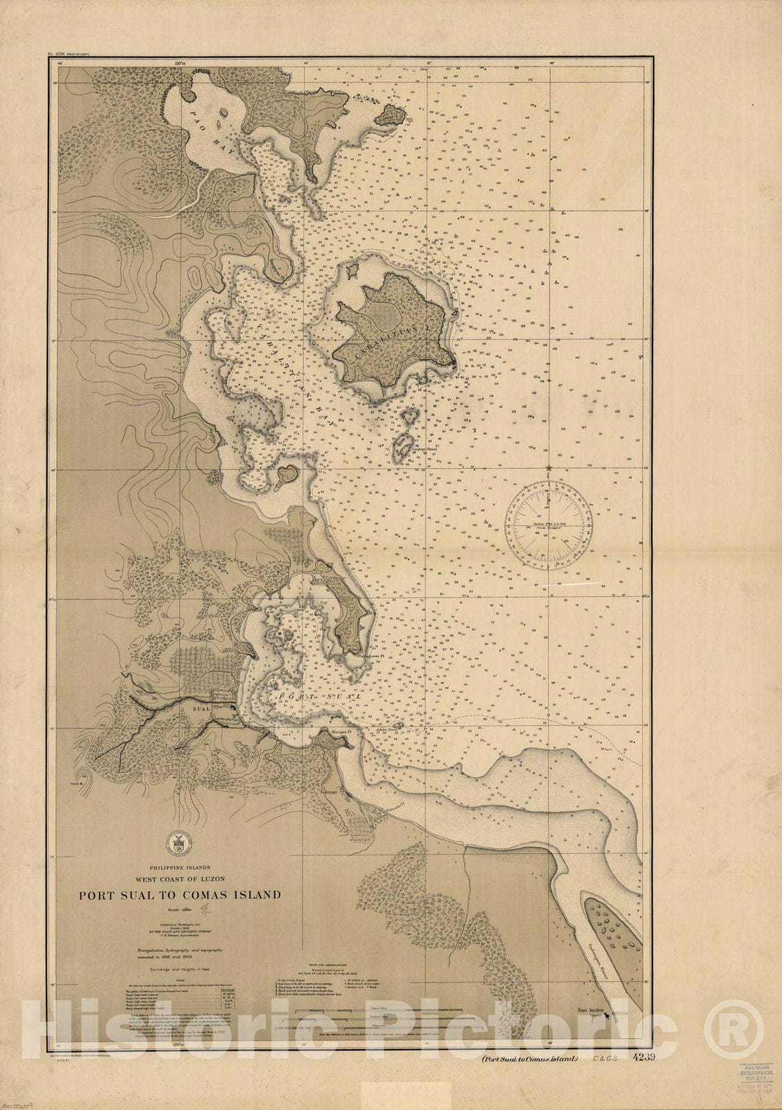 Map : Port Sual to Comas Island, Philippines 1904, Philippine Islands, west coast of Luzon : Port Sual to Comas Island , Antique Vintage Reproduction