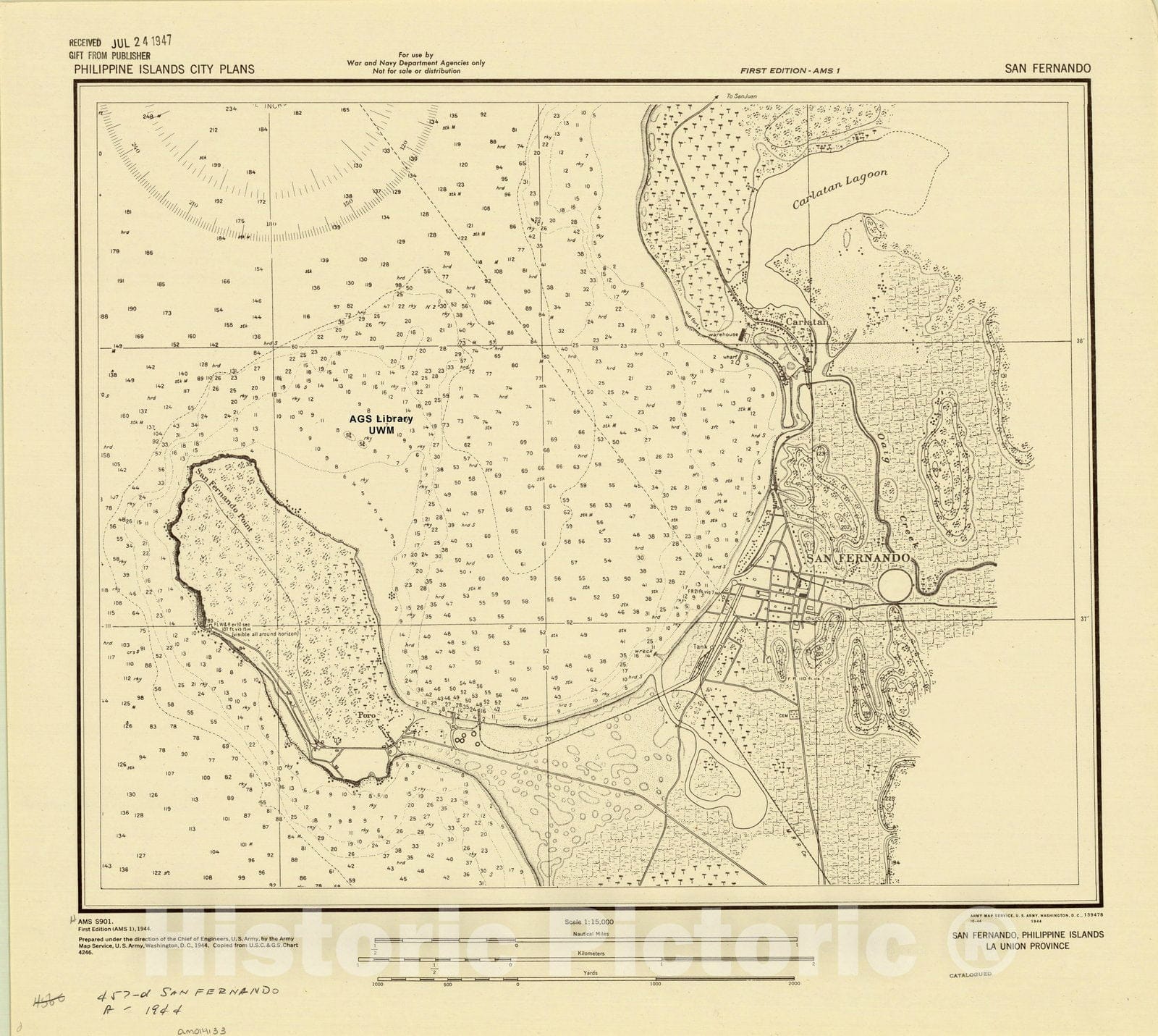 Map : San Fernando, Philippines 1944, San Fernando, Philippine Islands, La Union Province , Antique Vintage Reproduction
