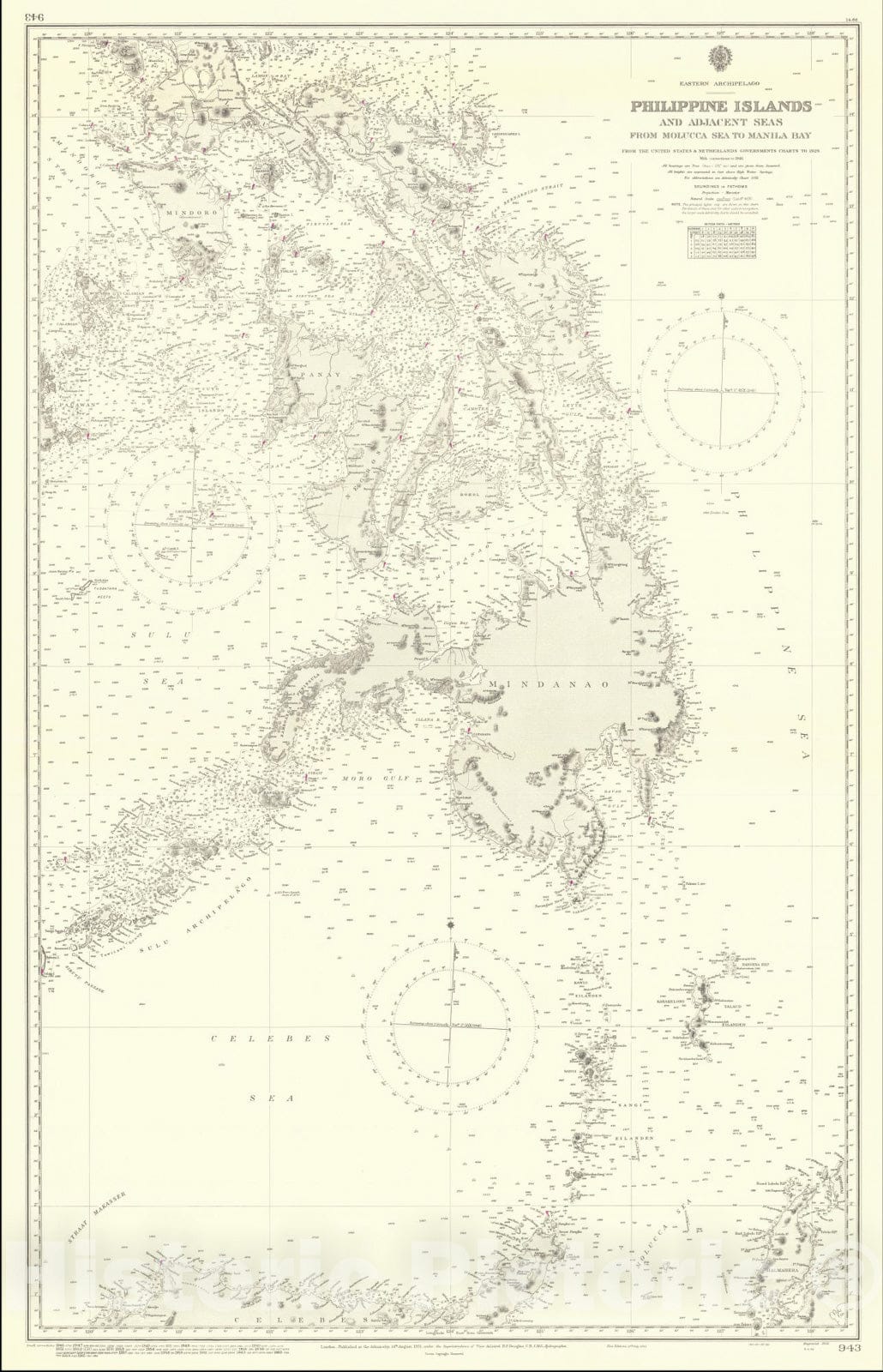 Historic Map : Philippine Islands and Adjacent Seas From Molucca To Manila Bay From The United States & Netherlands Government Charts To 1929.With Corrections to 1946,1946 (1965), Vintage Wall Art