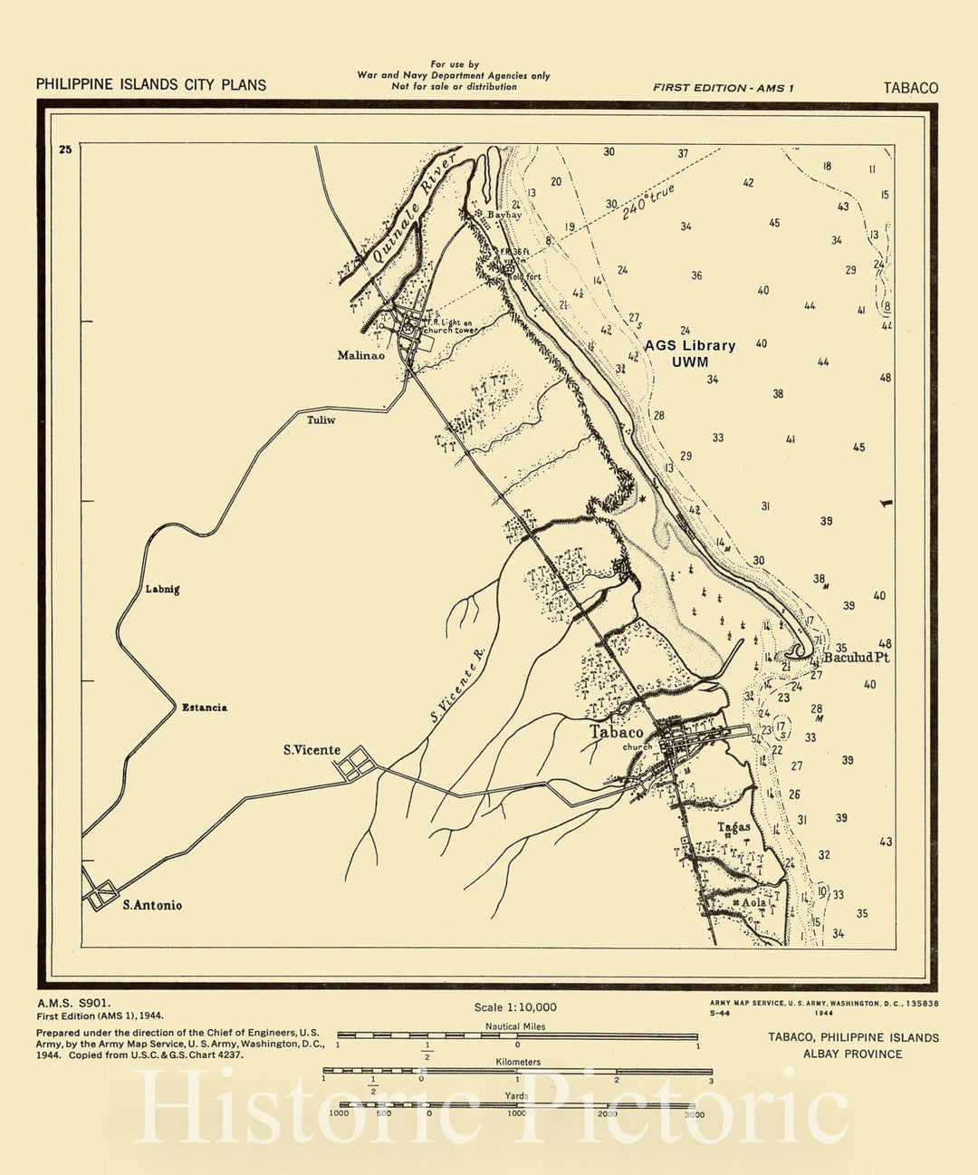 Map : Tabaco, Philippines 1944, Tabaco, Philippine Islands, Albay Province, Antique Vintage Reproduction