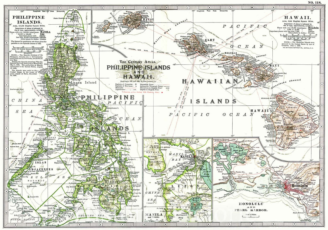 Historic Map : 1902 Philippine Islands and Hawaii : Vintage Wall Art