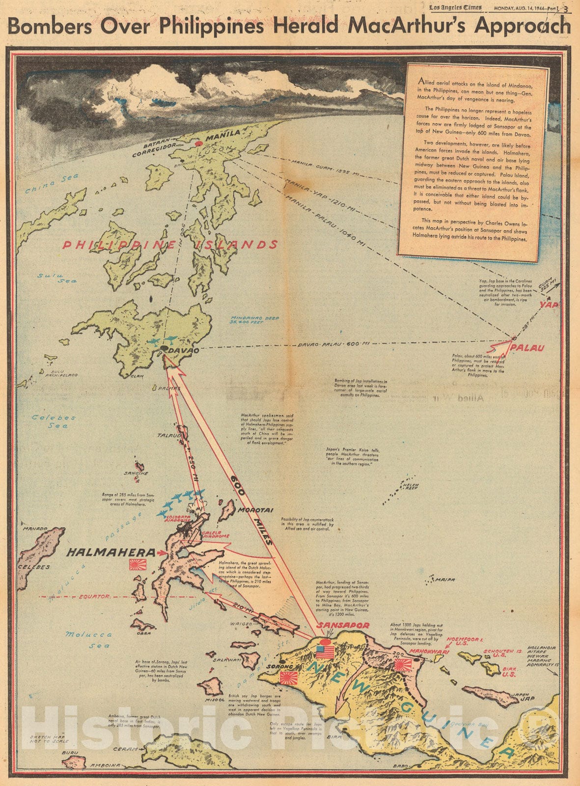Historic Map : Bombers over Philippines Herald MacArthur's approach, 1944, Vintage Wall Art