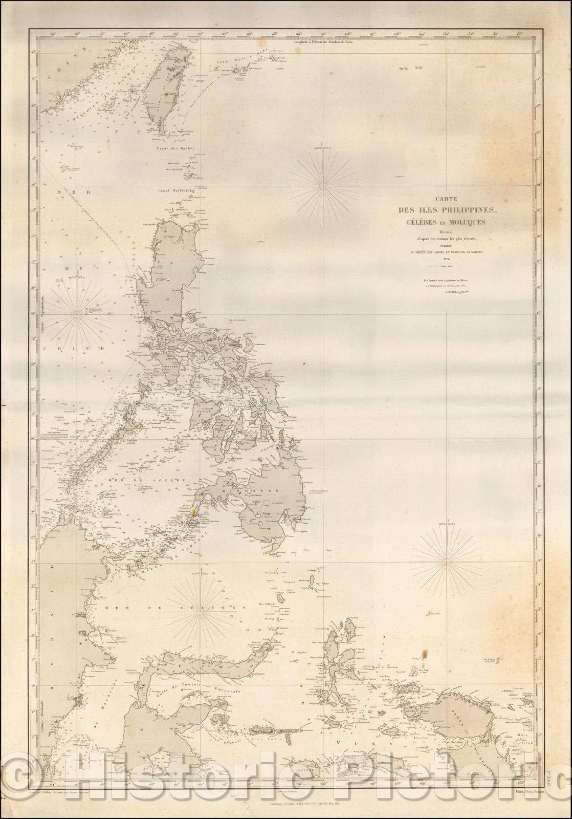 Historic Map - Carte des Iles Philippines, Celebes et Moluques Dressee d'apres les travaux les pus recents, 1871, Depot de la Marine - Vintage Wall Art