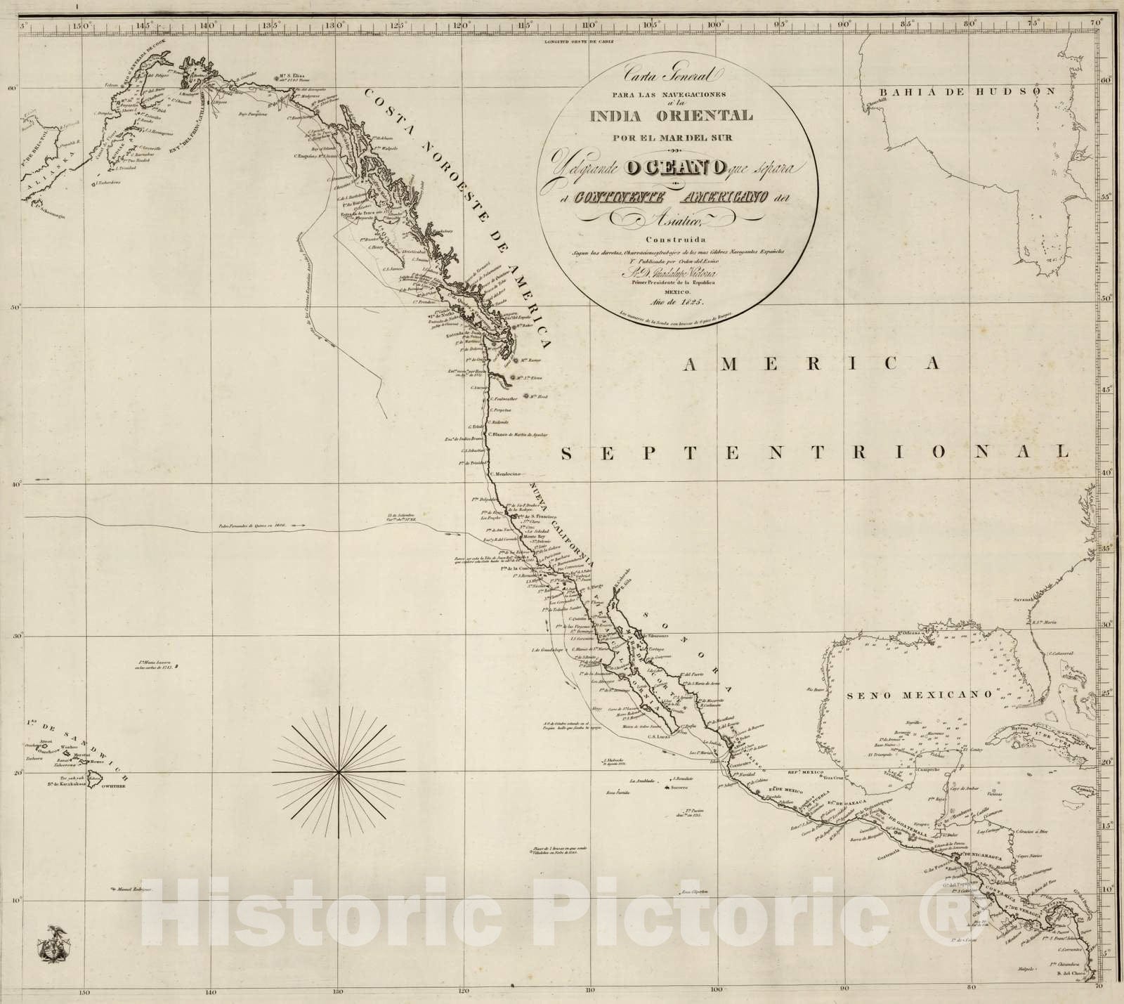 China; Japan; Philippines, Pacific Ocean, North America 1825 Carta General Para Las Navegaciones a la India Oriental Por El Mar Del Sur Y v1 , Vintage Wall Art